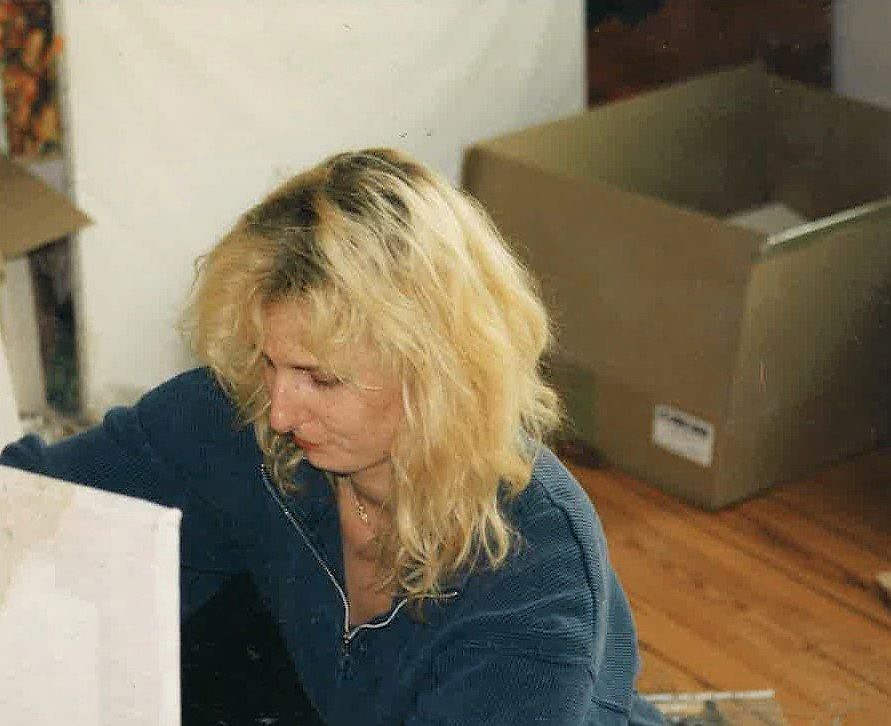 Bald zog sie dann voller Ideen und Elan ins alte Dorf in Wandlitz, erste Speckstein- und Malkurse mit Freunden und Bekannten fanden statt. Viel Energie und Kraft steckte sie dann in die Renovierung einer alten Wohnung im Lanker Weg 7, in der sie den Traum von ihrem eigenen Atelier verwirklichen wollte. Ein Atelier, das durch seine inspirierende Atmosphäre und Arbeitsmöglichkeiten Voraussetzung für das intime künstlerische Schaffen ist. Erste Kinder und Erwachsene fanden sich zu festen Kursen zusammen, im November '97 wurde so der "Kids-Kunst-Club" ins Leben gerufen. Im darauffolgenden Jahr gestaltete sie auch das große Wandbild an der Außenfassade der Kita "Pusteblume" in Wandlitz, welches einen Spaziergang wert ist ... Ebenfalls konnte sie erste Aufträge der Berliner Union - Film in Tempelhof ausführen: Bühnenmalarbeiten, vorallem Hintergrundgestaltung fürs Fernsehen - z.B. fürs "Frühstücksfernsehen"/Sat 1 und die Filmpreisverleihung '98 im ARD - Fernsehen ... Die imensen Dimensionen solcher Arbeiten müssen in kurzer Zeit bewältigt werden, der unbeheizte Saal des ehemaligen Gasthofes " Goldener Löwe" in Wandlitz diente als Werkstatt.
